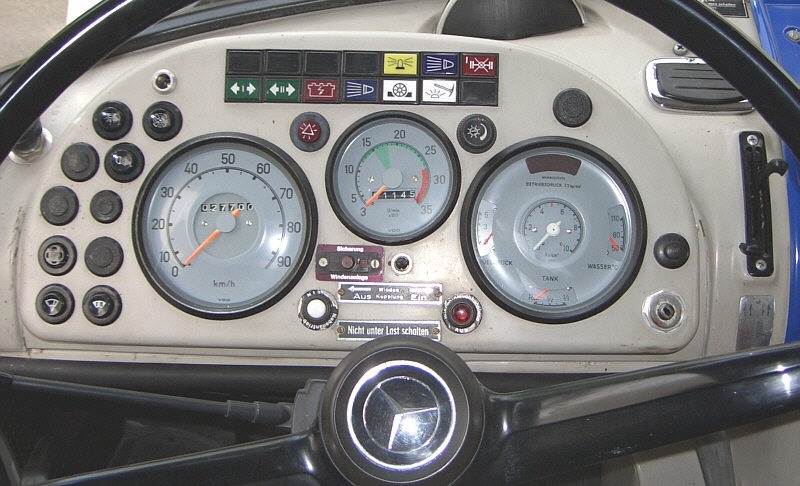Bij het zoeken naar een toerenteller trof ik een plaatje van de originele aan zoals Mercedes de auto vroeger uitrustte. Ik vind dat er wel heel erg goed uitzien en ga op zoek naar eentje. Hier een plaatje waarbij ook de platte snelheidsmeter is opgenomen. Zoiets moet het worden al moet er nog wel een gat komen om het te monteren.