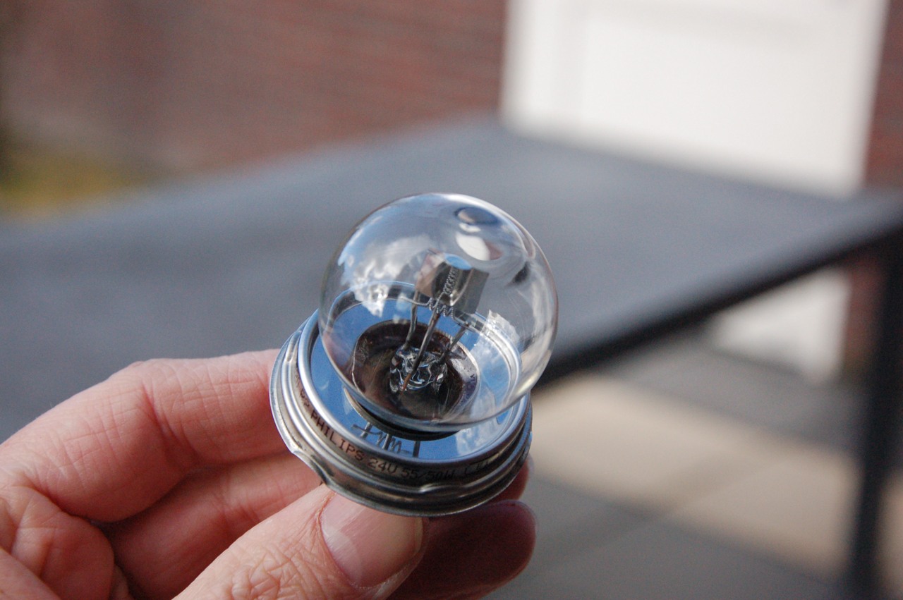 Ook had ik nieuwe bolletjes gekocht voor in de voorlampen. Ik dacht de juiste te hebben besteld maar dat viel tegen. Ze passen niet en die heb ik dus over. Maar toen ik vandaag ging kijken wat er dan wel in moest ging het bestaande bolletje ook spontaan stuk terwijl ik geen reserve heb. Van nieuwe lampen naar geen lampen, het kan verkeren.