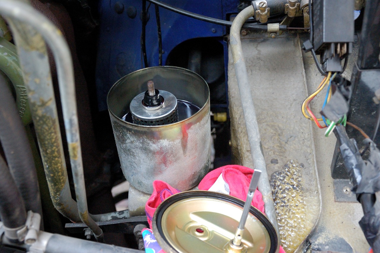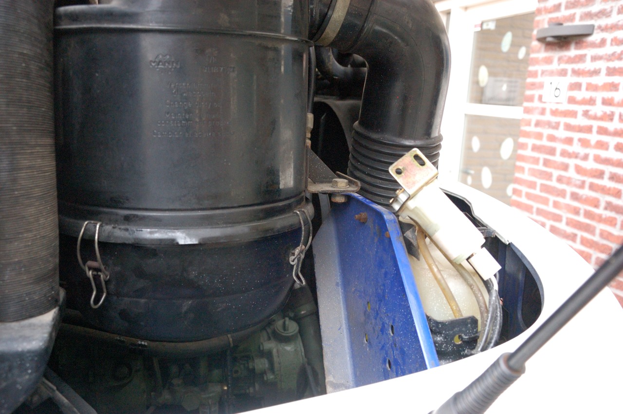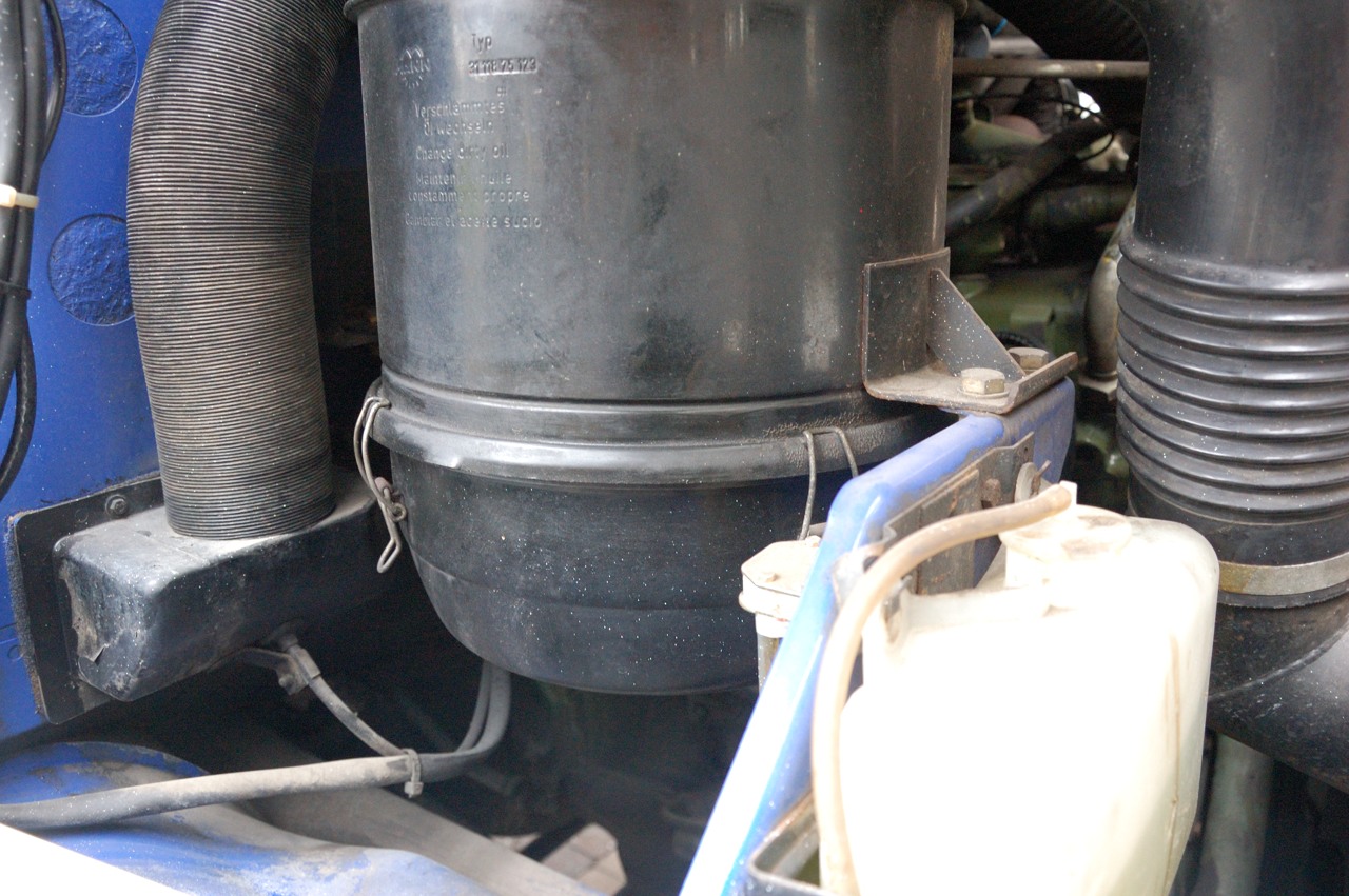Een apart hoofdstuk is het luchtfilter. Een papieren of stoffen luchtfilter is wat de meesten van ons wel kennen maar de Mercedes heeft een heel ander systeem namelijk een oliebad filter. Dit is gebaseerd op een systeem waarbij de in te nemen lucht voor de motor langs een oliebad wordt geleid voordat het naar de motor toegaat. Het idee is om de lucht een scherpe bocht te laten maken vlak langs het oppervlakte van de olie zodat in de lucht aanwezig stof daarin neerslaat.
