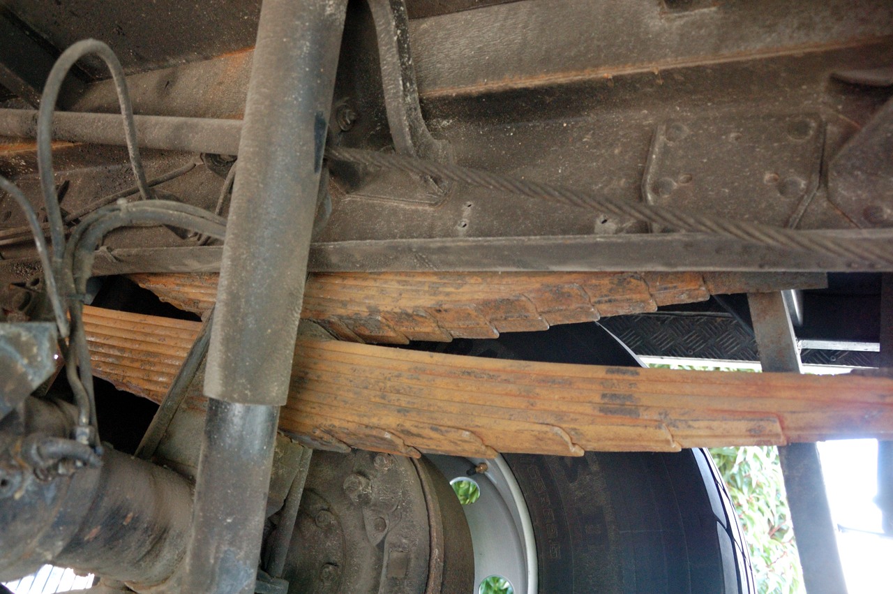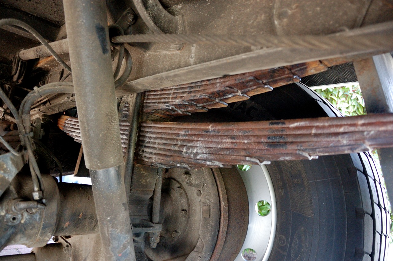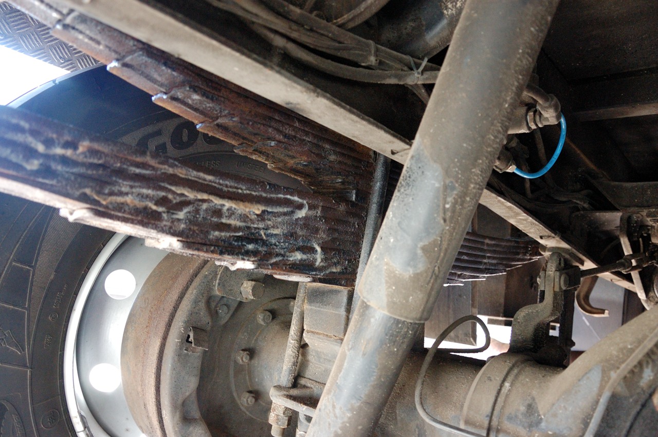Toen eenmaal alles was gesmeerd was opgevallen dat de bladveren er wel erg slordig uitzagen. Ze waren ooit vanuit de fabriek voorzien van wat lak en later is er nog een laag anticorrosie overheen gesmeerd. Dit was echter allemaal log gekomen en roest, vuil en oud verfwerk hing er maar een beetje bij.