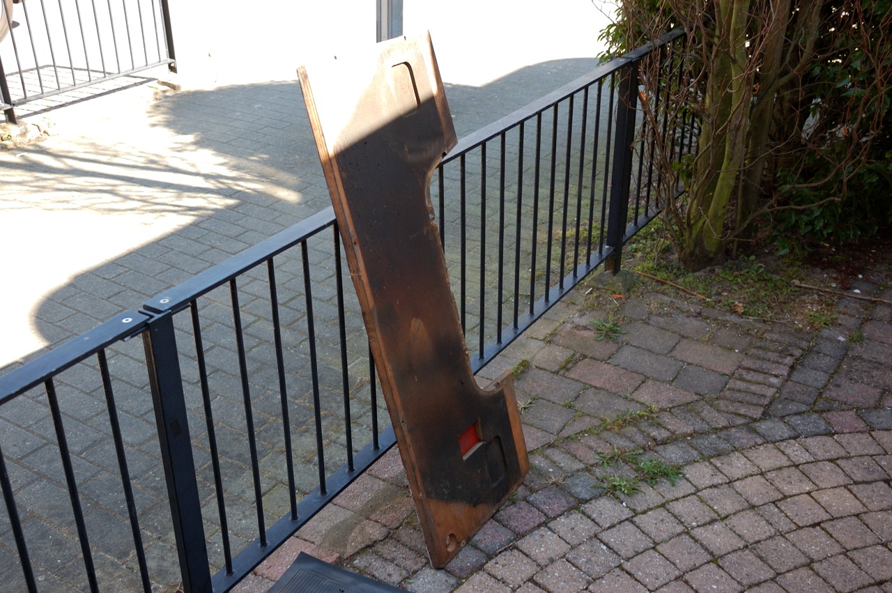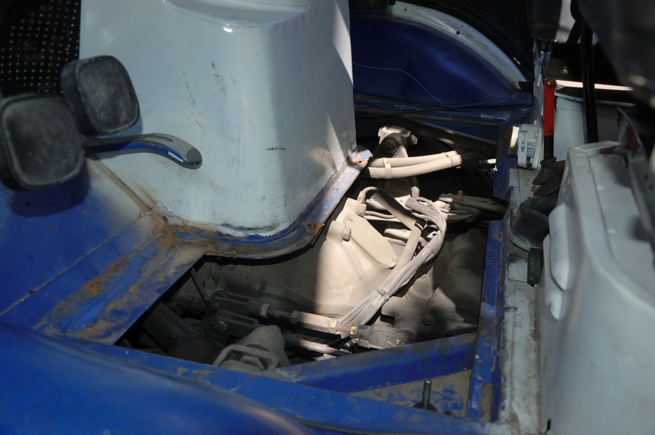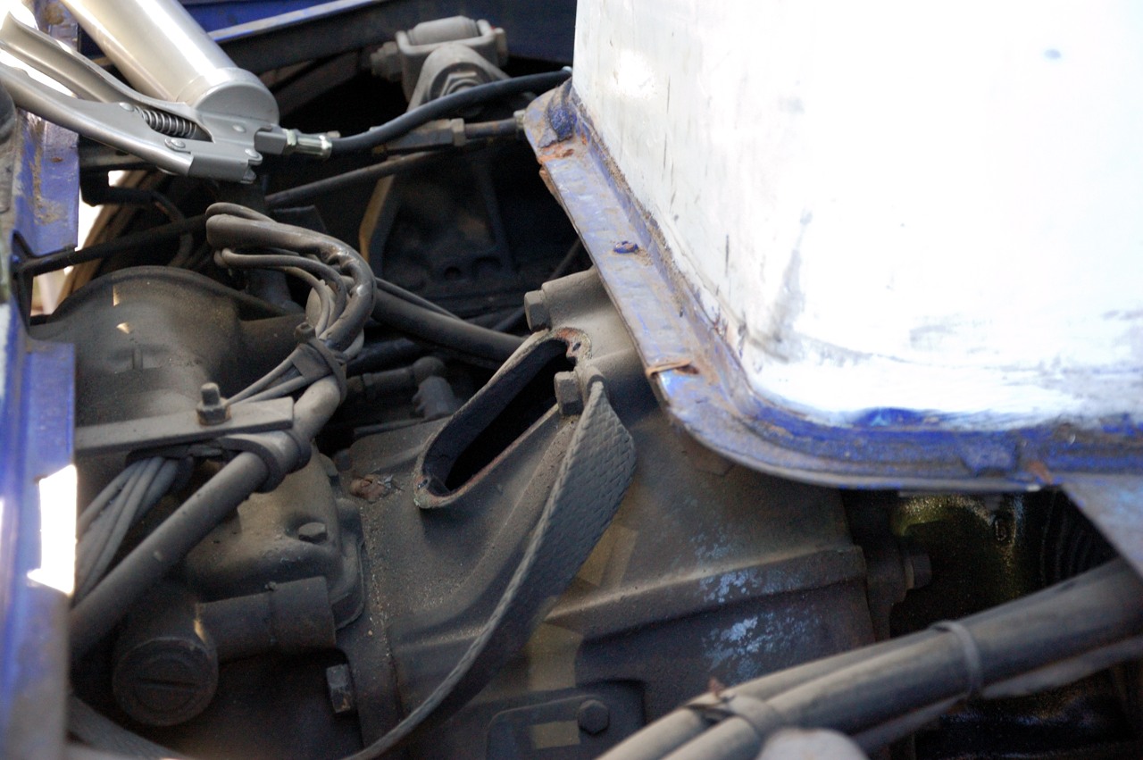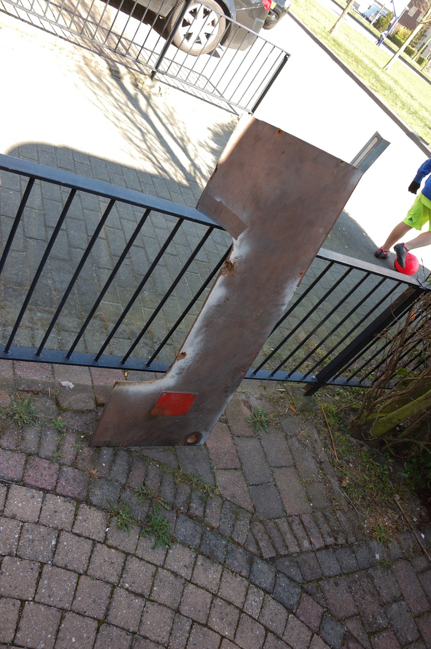 Nadat de hele auto aan de onderkant was gedaan werd het tijd om de houten plank weg te nemen aan de voorkant van de cabine, hieronder zitten namelijk nog enkele smeernippels.