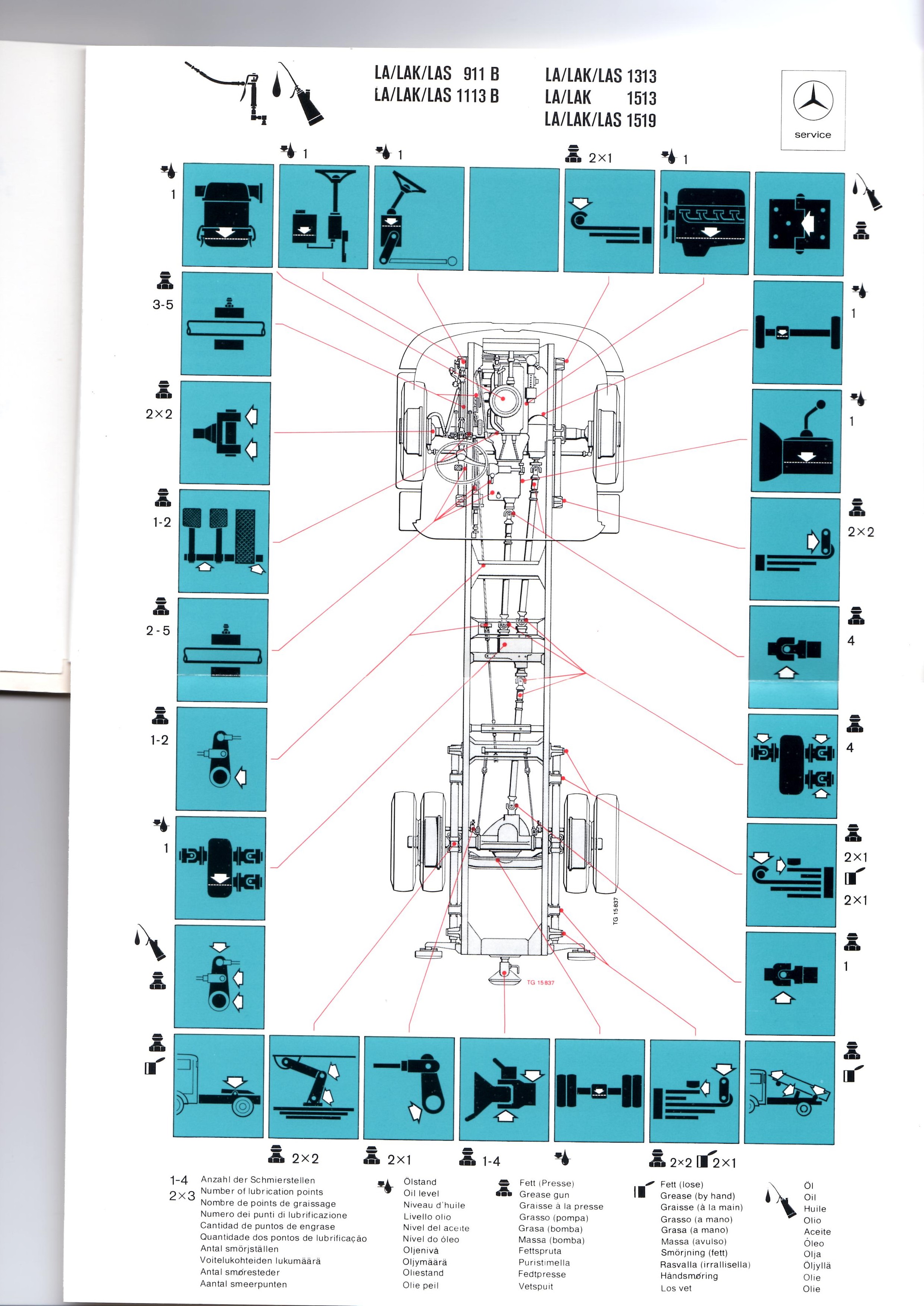 De zondag was het weer aanzienlijk beter en er werd al vroeg begonnen. Het voornemen was om een in de handleiding van de auto opgenomen smeerwijzer te gebruiken, om op die manier niets te vergeten. Voor de liefhebbers, zie hieronder.