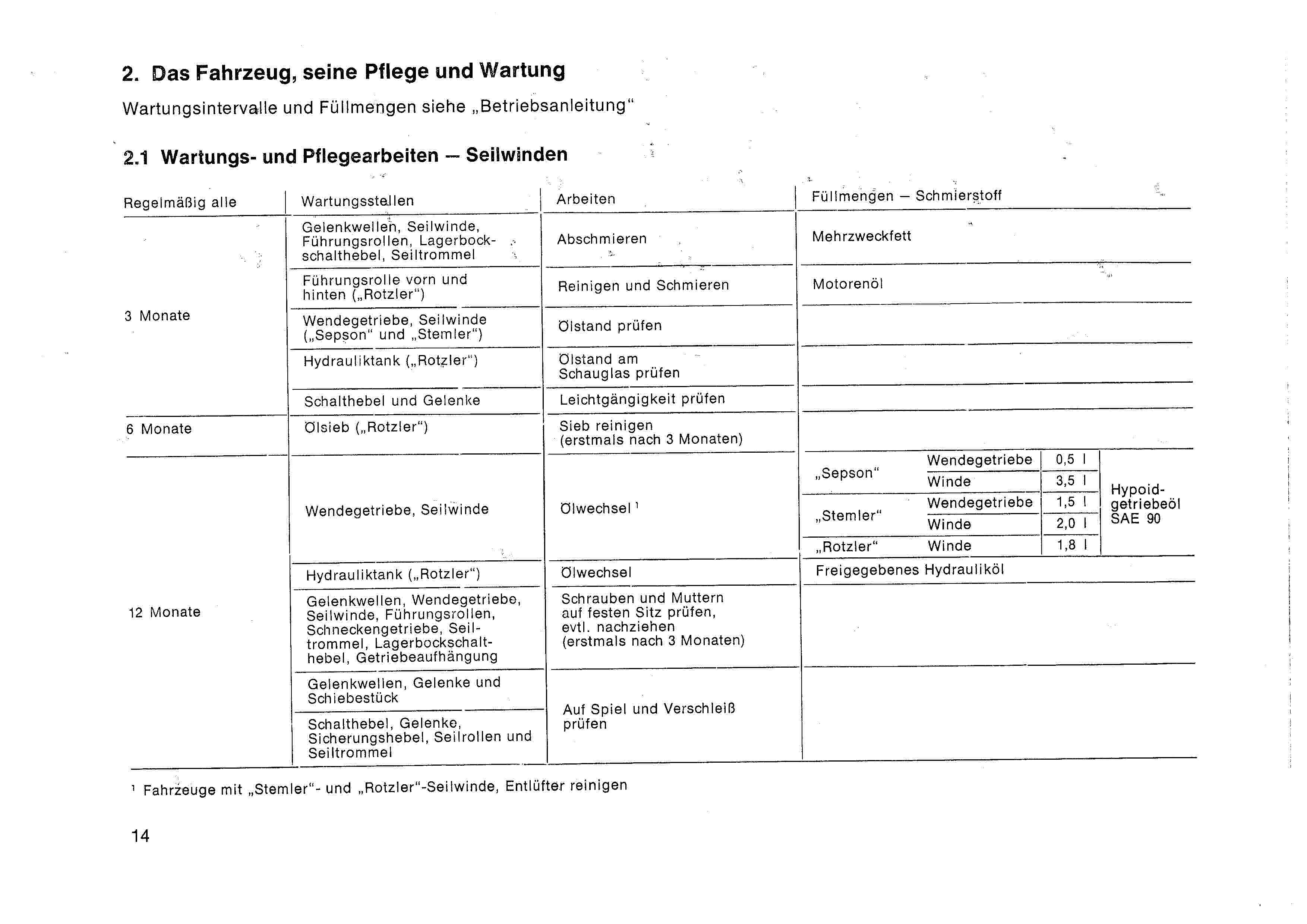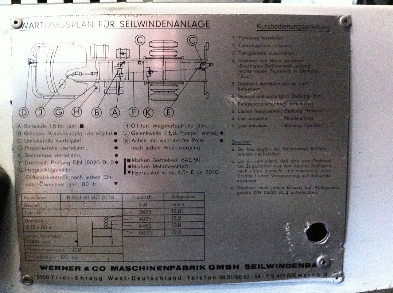 In de auto zit een plaatje wat op hoofdlijnen de bediening en het onderhoud van de lier aangeeft.