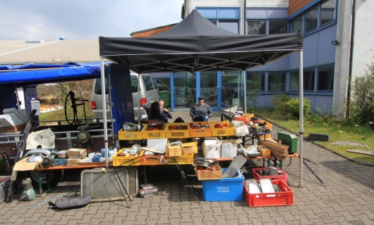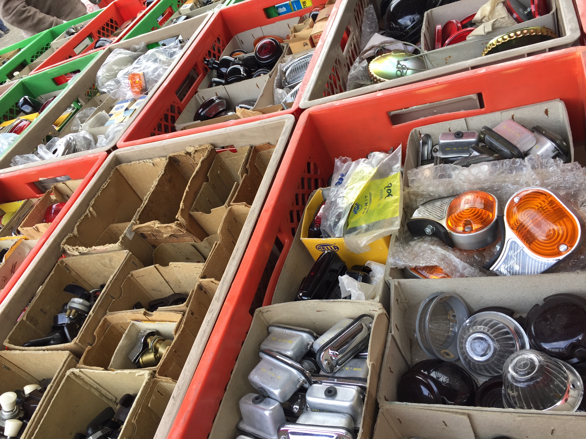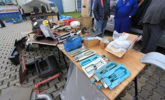 De markt bestond uit een flink aantal kraampjes waarin aanbieders hun spulletjes hadden uitgestald. Van plaatwerk tot lampen en electronica, van motoronderdelen tot interieurs, er was veel te vinden. Zie hieronder voor een impressie en uiteraard waren we daar met de Mercedes.