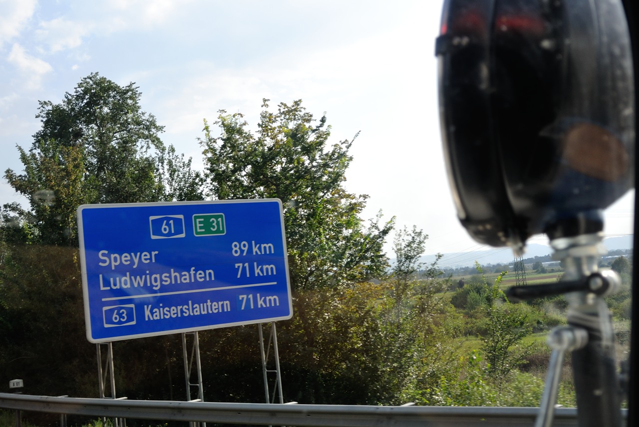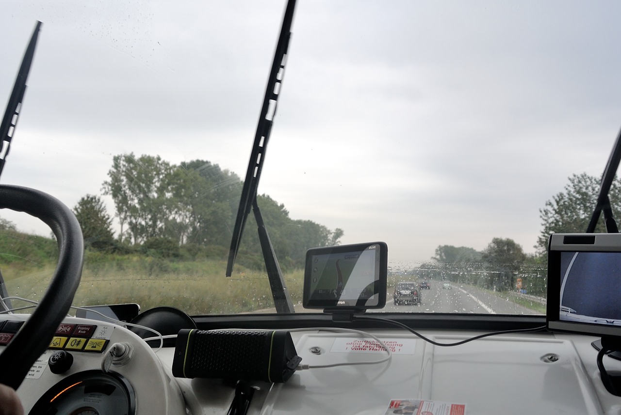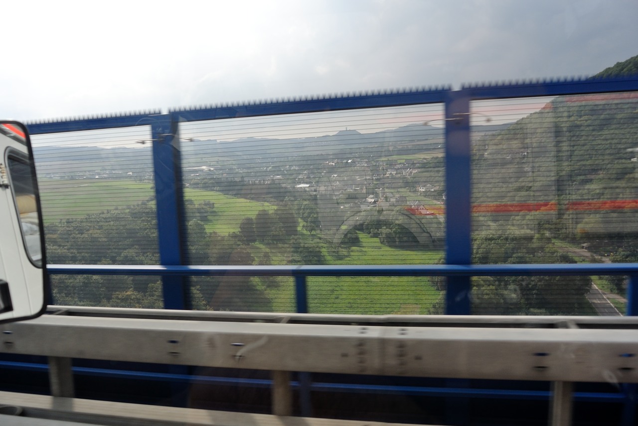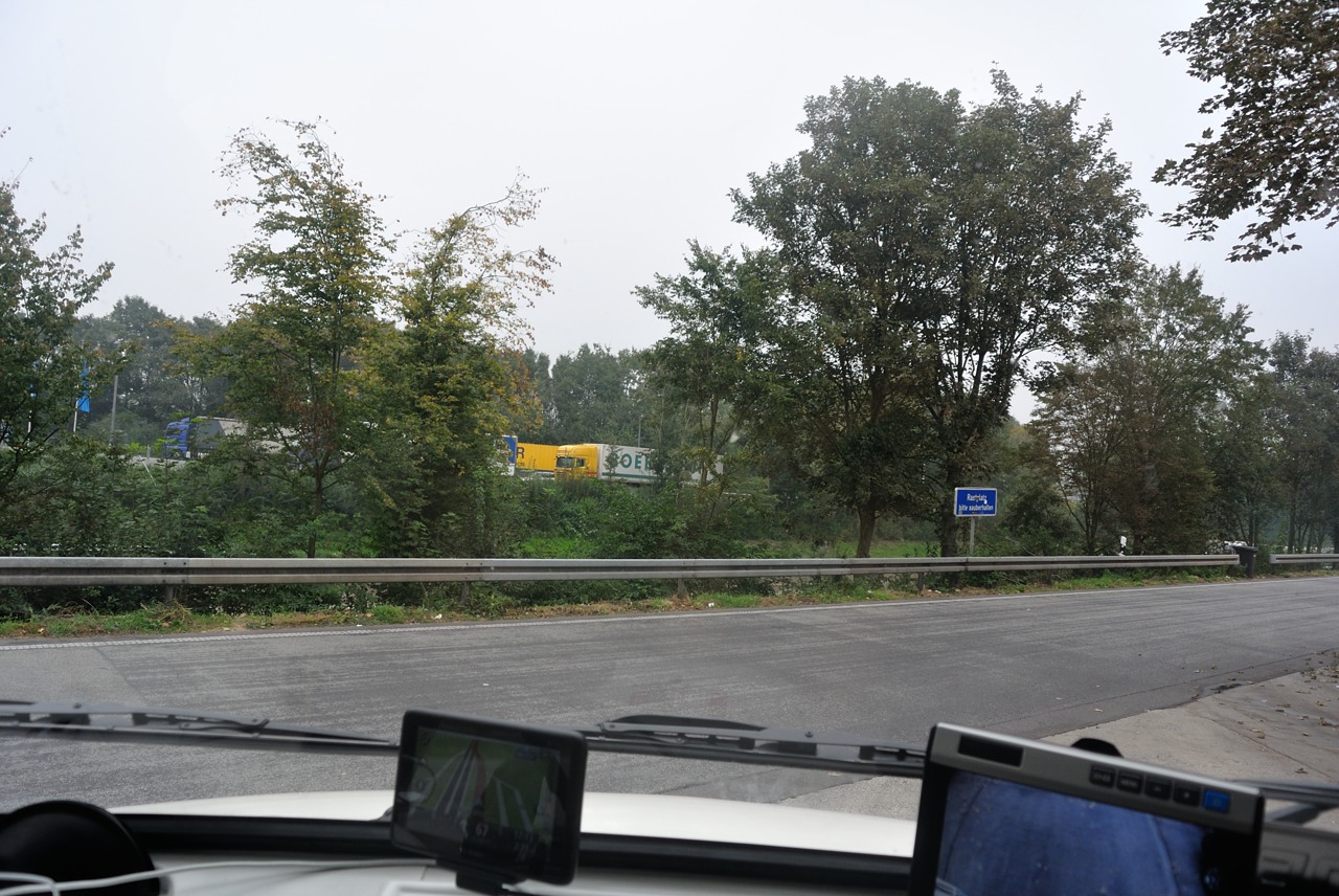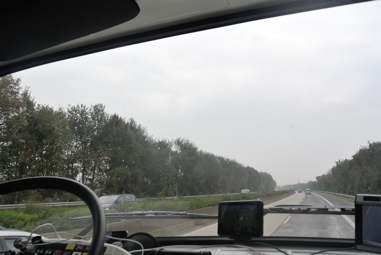 De volgende foto’s heeft Mika tijdens de rit gemaakt en wat opvalt is dat je prachtig zicht hebt op de weg. Doordat je een veel hogere zit hebt kun je vaak over de vangrails en brugleuningen heenkijken en heb je een heel andere kijk op de weg. We zijn in Nederland naar Venlo gereden en vanaf daar de 61 op gereden.