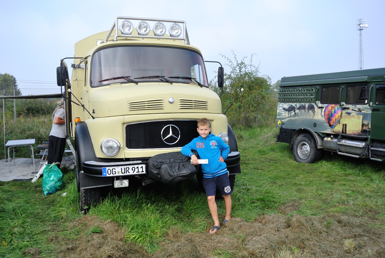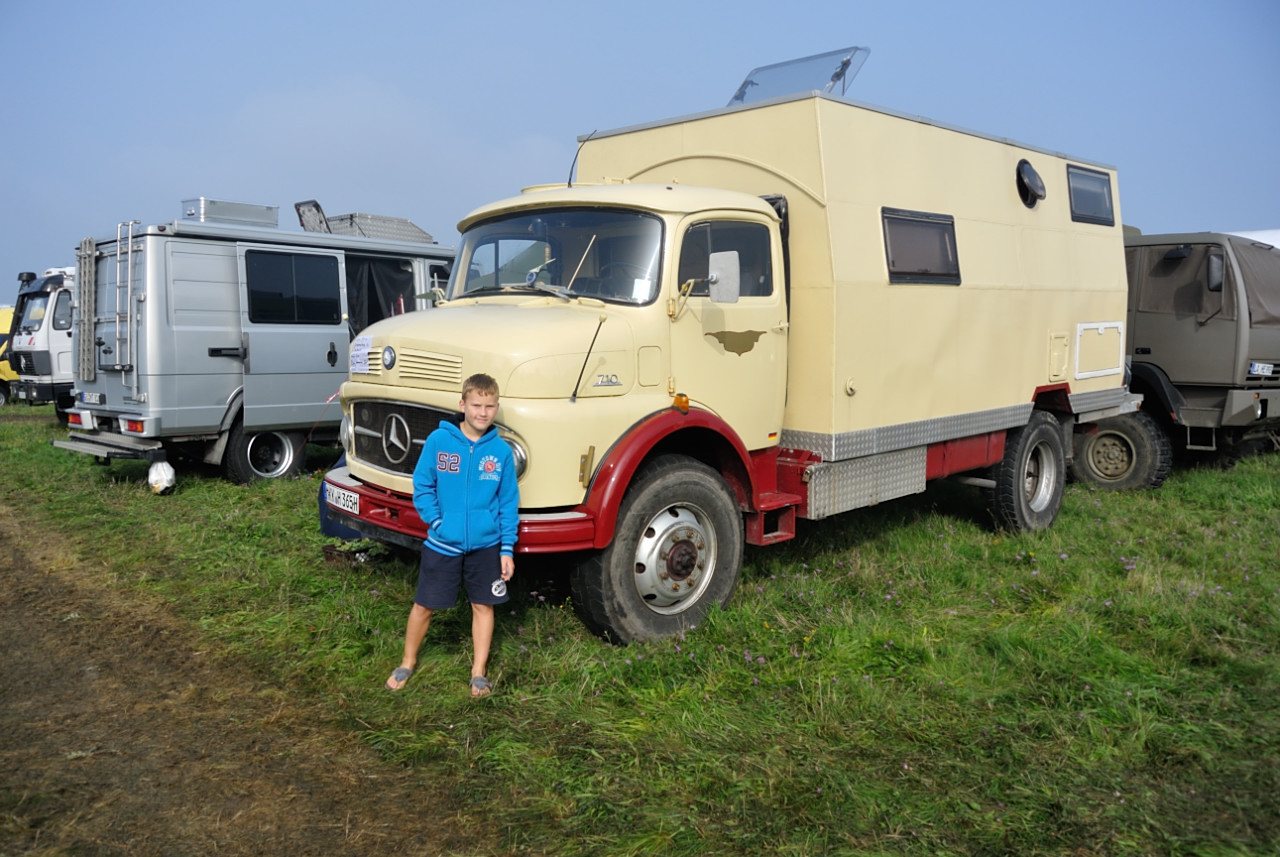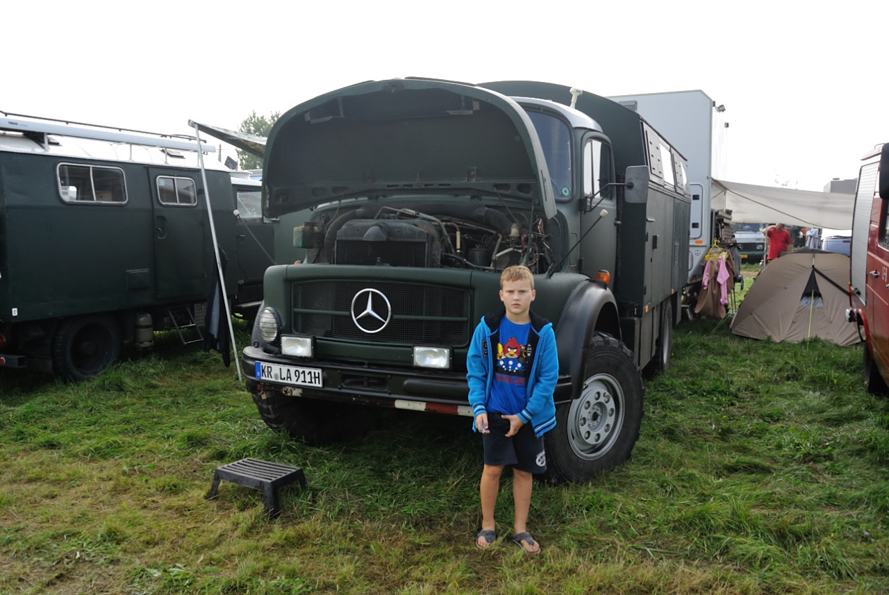 De volgende ochtend ontbeten met verse broodjes en koffie die ze daar verkochten. Dat was een prima start en we zijn de rest van het veld gaan bekijken. De navolgende foto’s is slechts een klein deel van alle aanwezigen. We hebben zo veel mogelijk Mercedes Haubers gefotografeerd om ideeën op te doen. Mika had er al snel aardigheid in om zo veel mogelijk Haubers te vinden al was hij ook onder de indruk van Magirussen en Unimog’s.