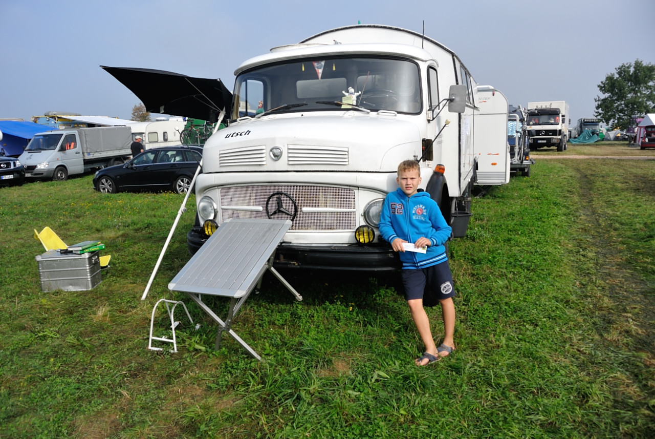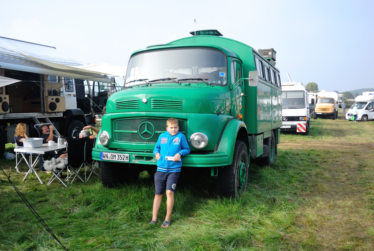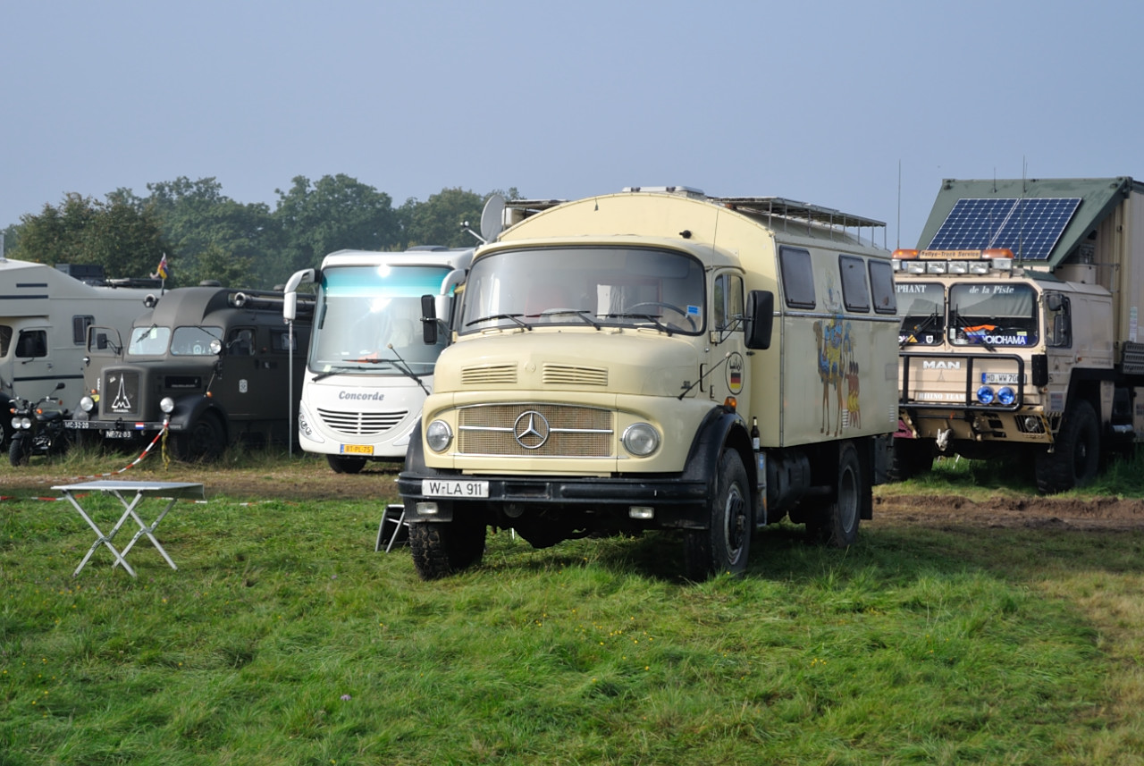 De volgende ochtend ontbeten met verse broodjes en koffie die ze daar verkochten. Dat was een prima start en we zijn de rest van het veld gaan bekijken. De navolgende foto’s is slechts een klein deel van alle aanwezigen. We hebben zo veel mogelijk Mercedes Haubers gefotografeerd om ideeën op te doen. Mika had er al snel aardigheid in om zo veel mogelijk Haubers te vinden al was hij ook onder de indruk van Magirussen en Unimog’s.